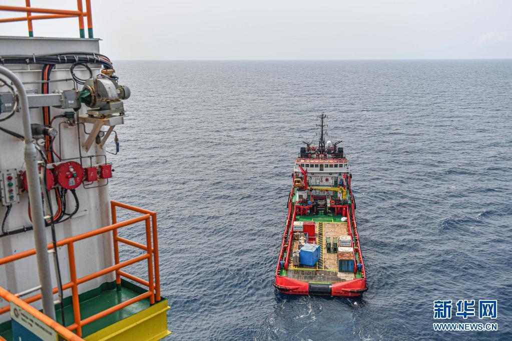 這是4月25日在南海北部海域拍攝的為中國(guó)海油樂東15-1氣田運(yùn)送物資的拖船。