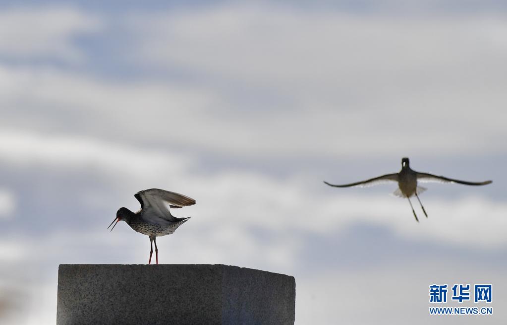 初夏,紅腳鷸在位于西藏拉薩的拉魯濕地國家級自然保護區(qū)內(nèi)起舞覓食。