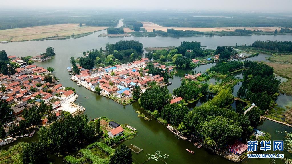 這是郵遞員王少朋服務的微山縣南陽鎮(zhèn)柳溝村和龔莊村(6月20日攝,無人機照片)。
