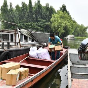 位于微山湖北端的山東省濟寧市微山縣南陽鎮(zhèn)四面環(huán)水,交通不便,生活物資和郵件包裹全靠船進船出。36歲的共產(chǎn)黨員王少朋,自2007年工作以來就一直負責著微山縣郵政分公司南陽支局唯一一條水上郵路。