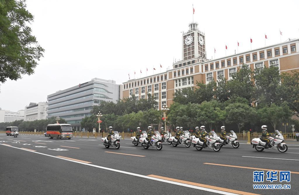 這是“七一勛章”獲得者集體乘坐禮賓車從住地出發(fā),由國賓護(hù)衛(wèi)隊(duì)護(hù)衛(wèi)前往人民大會(huì)堂。