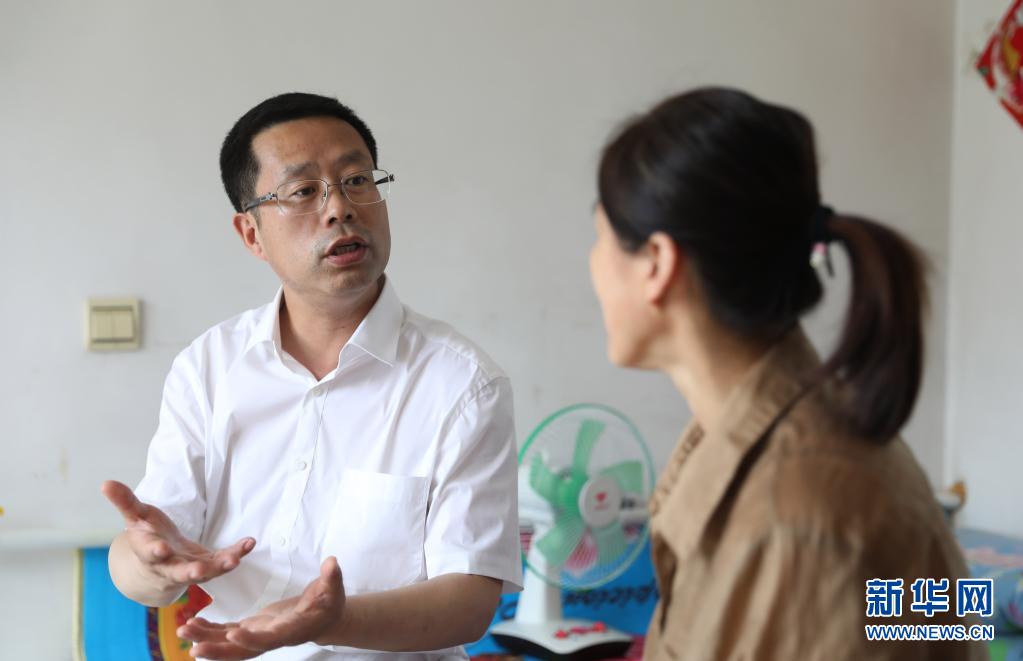 7月2日,在沈陽市沈北新區(qū)興隆臺街道單家村,聞然(左)與村民交談。新華社記者 楊青 攝