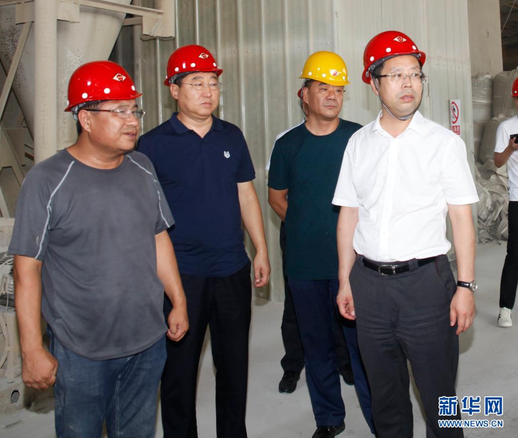 2018年8月4日,時任海城市委書記聞然(右一)在調(diào)研菱鎂產(chǎn)業(yè)發(fā)展情況。新華社發(fā)