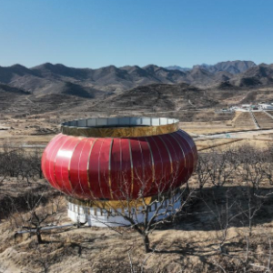 记者发现,附近的十多个山头上,各有一个特大号的“红灯笼”。它们是引水灌溉工程的蓄水“天池”。人们给它们“穿”上红色的彩钢瓦外套,形如红灯笼。“灯笼”周身安装了太阳能灯带,夜幕降临后,“灯笼”亮起来,成为一道独特的风景。