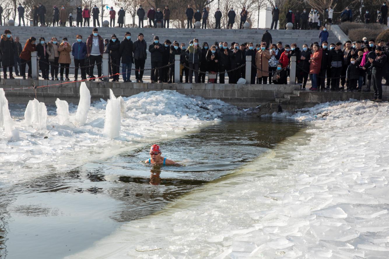 吃完再說玩,北國凌源,這里可從來不貓冬,他們把冰天雪地當成了激情飛揚的秀場。大凌河的冰面愣生生被鑿出一條“長河”,成為冬泳愛好者的基地。