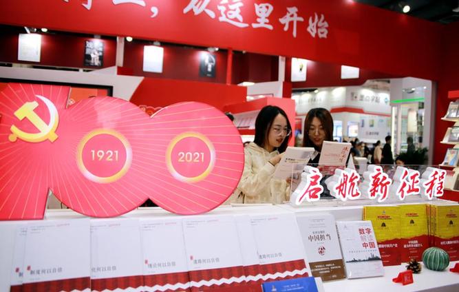 在會(huì)場(chǎng)最醒目位置特設(shè)慶祝建黨100周年主題圖書展區(qū)