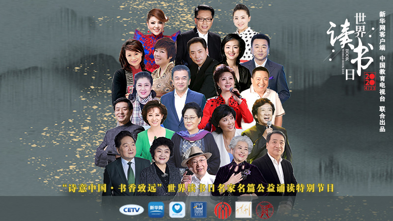 “最是書香能致遠(yuǎn)”,在2020年世界讀書日來臨之際,新華網(wǎng)客戶端和中國教育電視臺(tái)聯(lián)合發(fā)起了“詩意中國·書香致遠(yuǎn)世界讀書日名家名篇公益誦讀活動(dòng)”。喬榛、濮存昕、斯琴高娃、董浩、于丹等著名藝術(shù)家、主持人、學(xué)者以及來自全國各地朗讀演講的專業(yè)老師紛紛獻(xiàn)聲誦讀、分享名篇。希望美好的聲音能取悅您的耳朵,慰藉您的心靈……