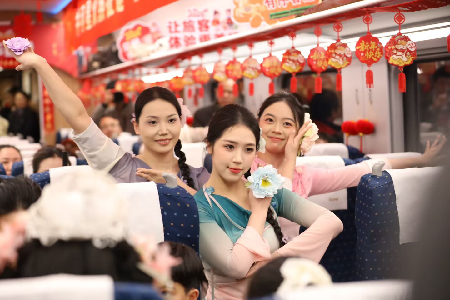 本届列车春晚围绕“铁路连通世界,文化共迎新春”这一主题,精心设计了融合中国传统文化、铁路精神、江西本土风情、国际友谊等内容的节目,通过百米车厢,让中外青年共演、共赏、共情,在旅途中搭建起跨文化对话的桥梁,营造开放包容、互学互鉴的美好氛围。