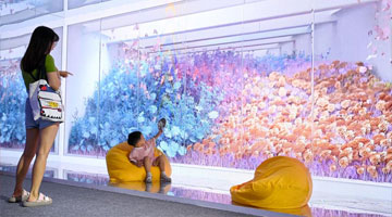8月17日,崔凯在辽宁省营口市自己家中展示他制作的吉祥轮彩纸风车成品。