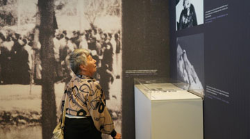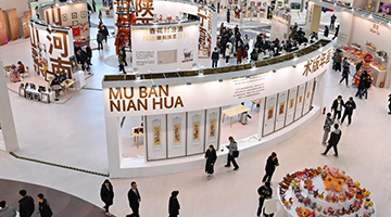 这是11月6日在斯洛文尼亚卢布尔雅那的民族志博物馆拍摄的修复完成的中国古建筑木质大门模型。