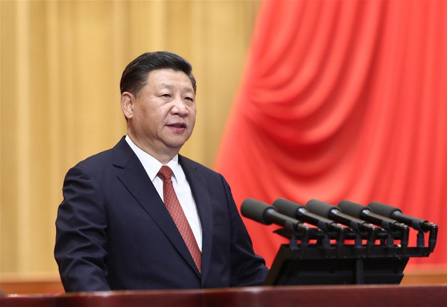 Chinese President Xi Jinping, also general secretary of the Communist Party of China Central Committee and chairman of the Central Military Commission, addresses a grand gathering in celebration of the 90th founding anniversary of the (PLA) at the Great Hall of the People in Beijing, capital of China, Aug. 1, 2017. (Xinhua/Ju Peng)