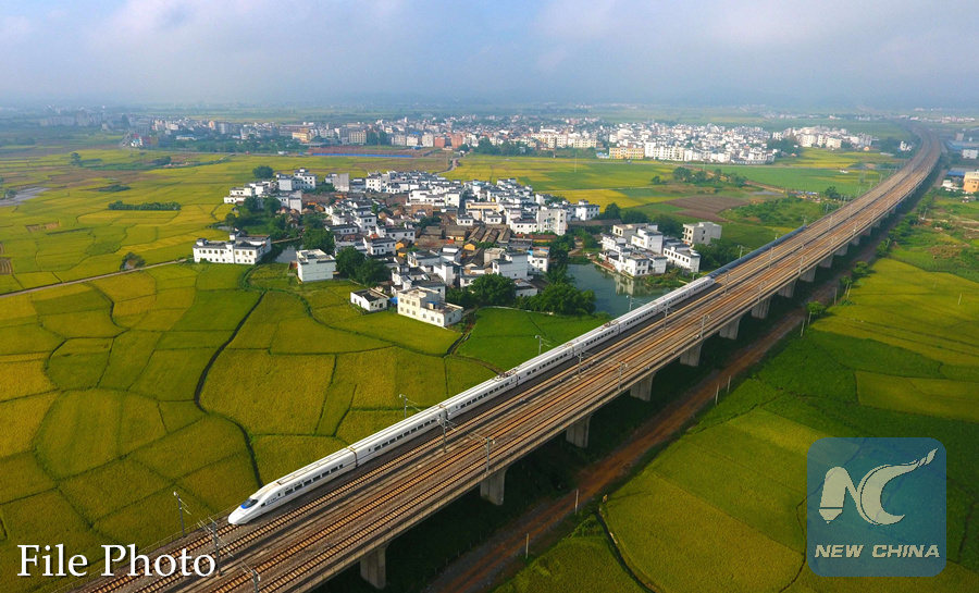 A bullet train drives in Liuzhou City, south China's Guangxi Zhuang Autonomous Region, July 15, 2017. (Xinhua/Li Xin)