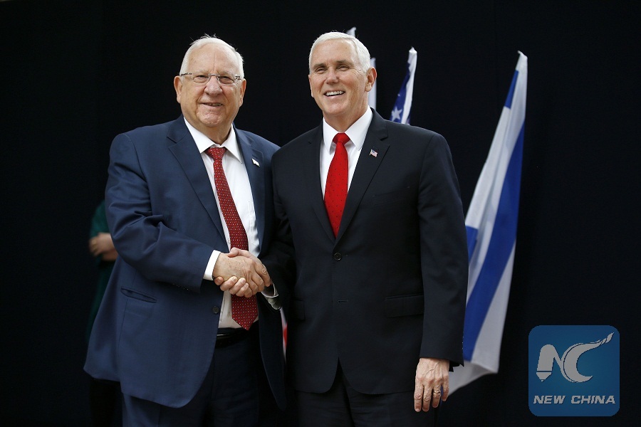 JERUSALEM, Jan. 23 (Xinhua) -- U.S. Vice President Mike Pence met with Israeli President Reuven Rivlin on Tuesday, stressing tight alliance between the U.S. and Israel will only grow stronger.