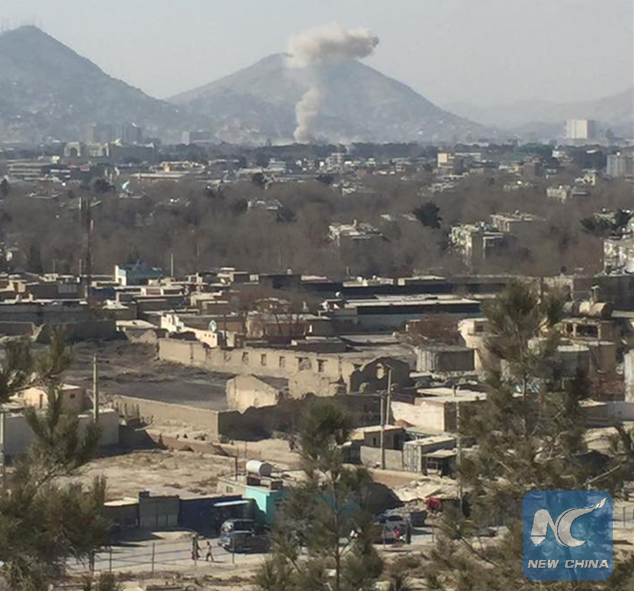 Smoke rises after a car bomb explosion in Kabul, Afghanistan January 27, 2018 in this image obtain from social media. (REUTERS PHOTO)