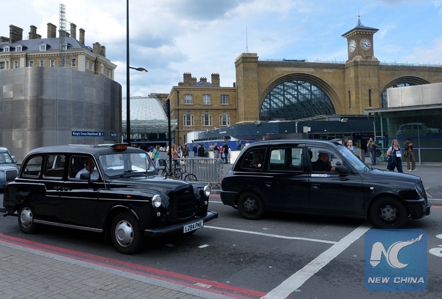 Photo shows the famous black London taxi cabs. (Xinhua/Gong Lei)