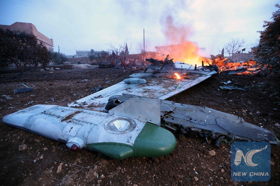 The Russian Defense Ministry said on Tuesday that they had asked for help from Turkey after a Su-25 fighter jet was shot down when it overflew a de-escalation zone in the province of Idlib in northwestern Syria, and the pilot blew himself up with a grenade after being seriously wounded and surrounded by the militants.