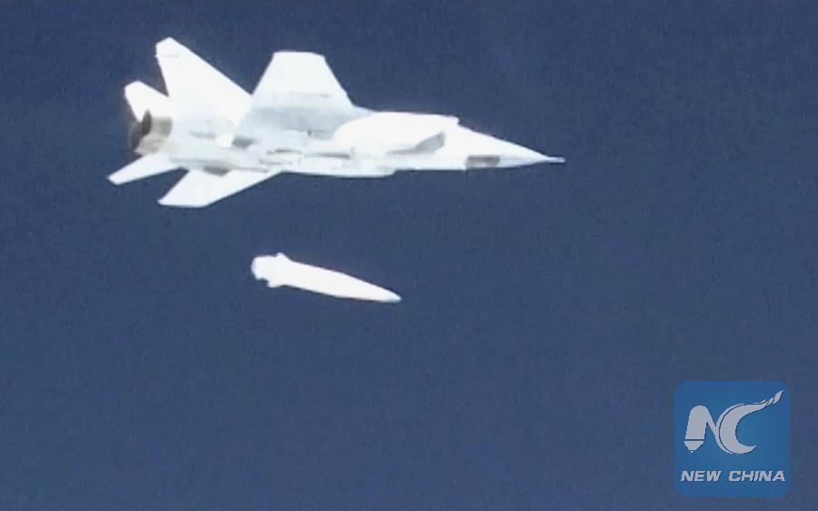 MOSCOW, March 11 (Xinhua) -- A Russian fighter jet carried out a training and combat launch of the hypersonic missile of Kinzhal, and the missile hit the target, the Russian Ministry of Defense said Sunday.