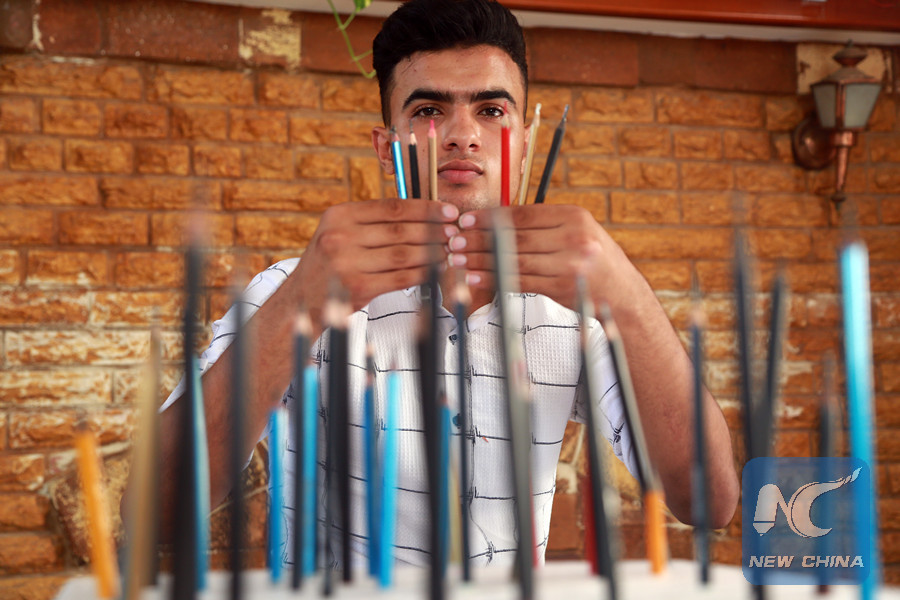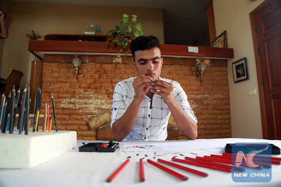 GAZA, Sept. 7 (Xinhua) -- Few would pay more than scant attention to a pencil lead. But for Firas Abu Zour, a 19-year-old Palestinian artist, it becomes a good way to demonstrate his artistic talent and craftsmanship.