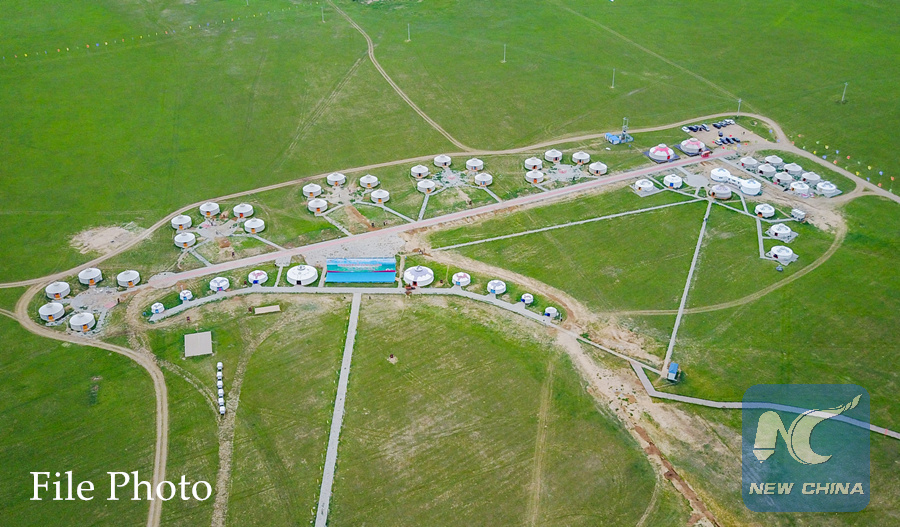 Aerial photo taken on July 21, 2017 shows roads to gers on a ranch near Xilinhot City, north China's Inner Mongolia Autonomous Region. (Xinhua/Lian Zhen)