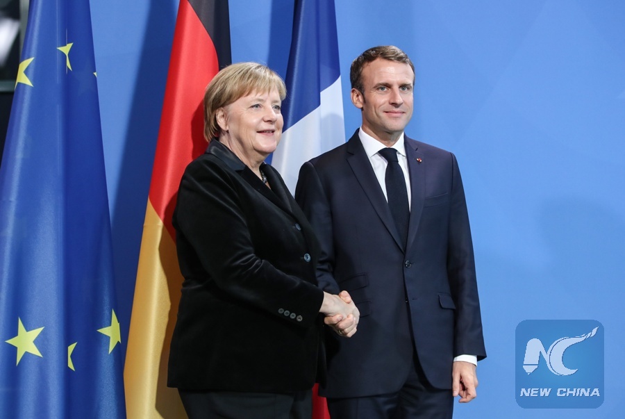 BERLIN, Jan. 20 (Xinhua) -- German Chancellor Angela Merkel said on Saturday that the cooperation between Germany and France is an engine of European integration.