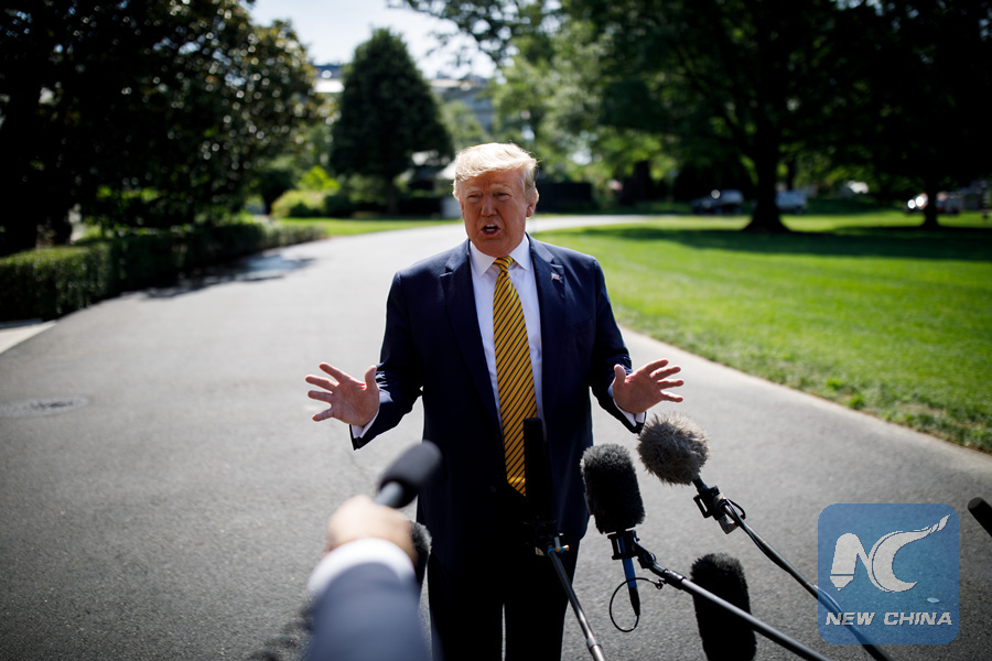 U.S. President Donald Trump speaks to reporters before departing from the White House in Washington D.C., the United States, June 22, 2019. (Xinhua/Ting Shen)