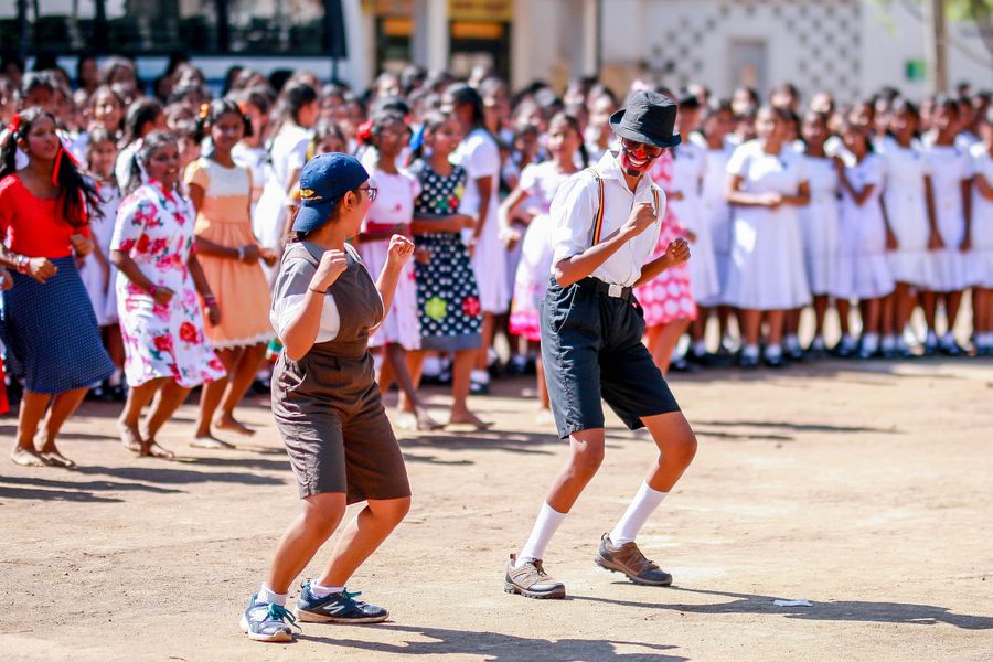 Students perform to celebrate Children's Day at Gothami Balika Vidyalaya in Colombo, Sri Lanka, on October 1, 2019. (Photo by Gayan Sameera/Xinhua)