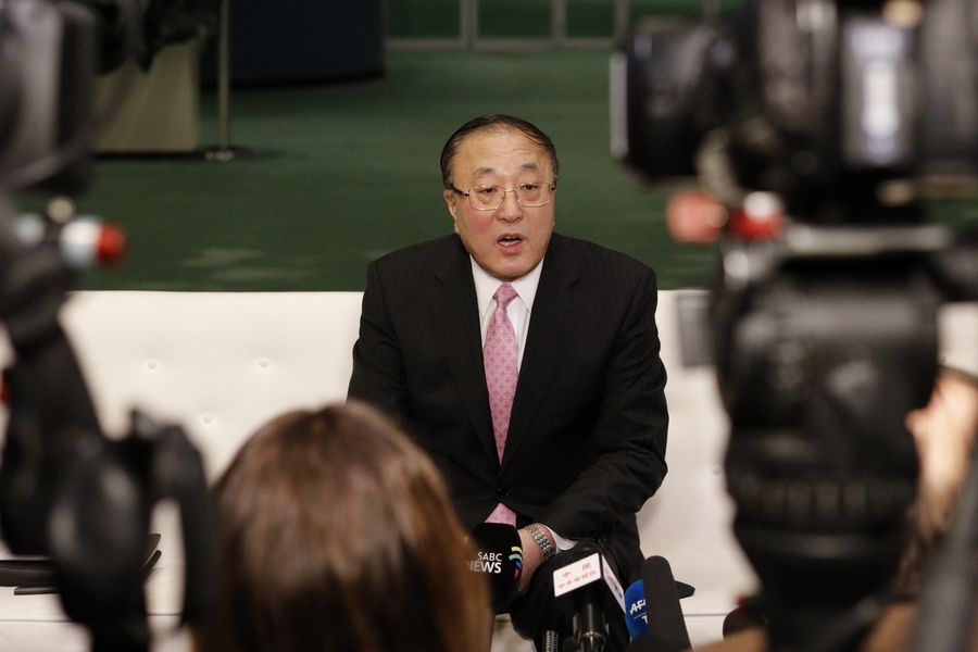 China's Permanent Representative to the UN Zhang Jun briefs UN media on China's decisive and strong measures to combat the novel coronavirus at the UN headquarters in New York, Jan. 30, 2020. (Xinhua/Li Muzi)