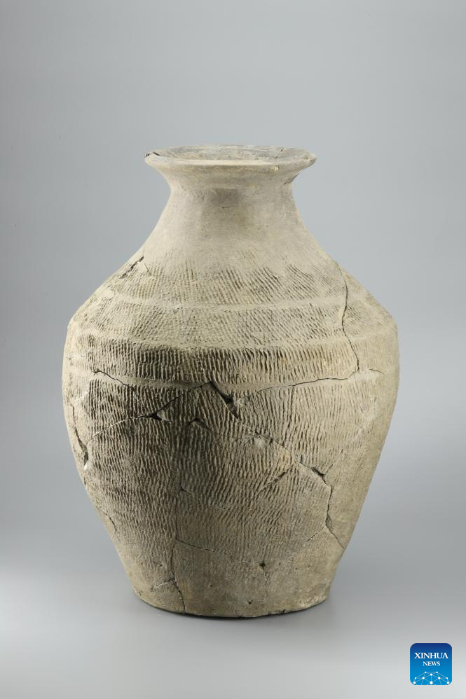 This undated file photo shows a pottery jar dating back to the Western Zhou Dynasty (1046 BC-771 BC), found at the Jiangliu Site in Jingyang County, northwest China's Shaanxi Province. (Shaanxi Academy of Archaeology/Handout via Xinhua)