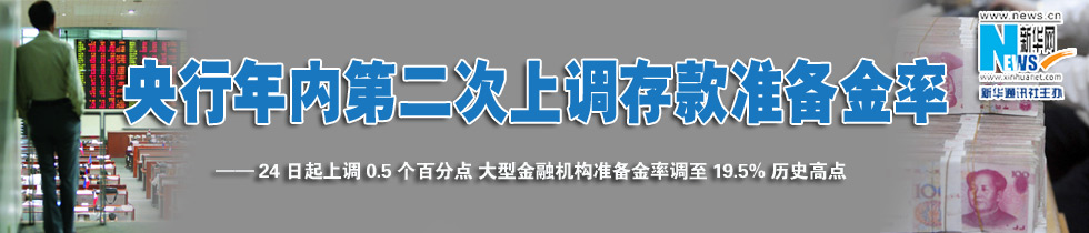 本次上調(diào)大約可凍結(jié)商業(yè)銀行資金逾3500億元。至此,大型商業(yè)銀行準(zhǔn)備金率達(dá)19.5%的歷史新高位。 [詳細(xì)]