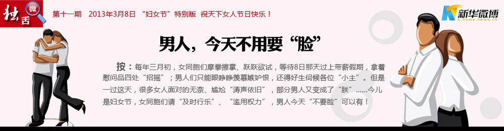 @蘄鄉(xiāng)農(nóng)夫: 在婦女節(jié)到來(lái)之時(shí),向長(zhǎng)期戰(zhàn)斗在試衣間,看韓劇,不做飯,魅力十足并掌握另一半錢包的杰出女性們致以節(jié)日的問(wèn)候。祝所有美女們:三圍魔鬼化,收入白領(lǐng)化,家務(wù)甩手化,快樂(lè)日常化,愛(ài)情持久化,情調(diào)小資化,購(gòu)物瘋狂化,老公奴隸化,祝三八婦女節(jié)快樂(lè)!