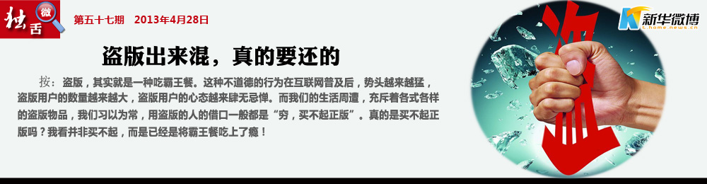 無(wú)處不在、無(wú)孔不入 猖獗的盜版侵權(quán)行為在各行業(yè)見(jiàn)縫插針,增強(qiáng)意識(shí),堅(jiān)決抵制,才是保護(hù)著作權(quán)的打擊盜版的釜底抽薪的方法。