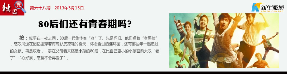 這就是80后 我們被關(guān)注,被評(píng)論,被標(biāo)簽……先是說80后叛逆,后來說80后沒有擔(dān)當(dāng),再后來三十不立?,F(xiàn)如今我們懷懷舊,就給你扣一頂“暮氣沉沉”的大帽子。