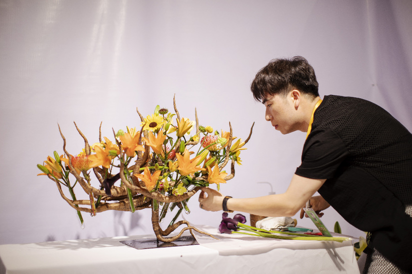 “輕攏慢捻抹復挑,插花也如琵琶語?!庇浾咴诂F(xiàn)場看到,選手們沉浸在插花藝術創(chuàng)作中,鮮花、枝葉在他們的手中經(jīng)過一番規(guī)整修剪,又如繪畫般慎重落下一抹畫筆,嬌艷綻放的鮮花在新的布局下,逐漸呈現(xiàn)出定格的自然之美、線條之美與意境之美,花藝設計本身的創(chuàng)作過程,就是一場賞心悅目的藝術呈現(xiàn),人和花交流的過程,也會讓人們更加能夠體會到生命的真實與絢爛。