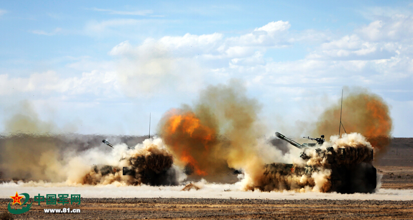 ????Soldiers from an armored brigade under the Chinese PLA’s 21st Group Army conduct tank gunnery training at a training area on July 17, 2015. (Source: www.81.cn)