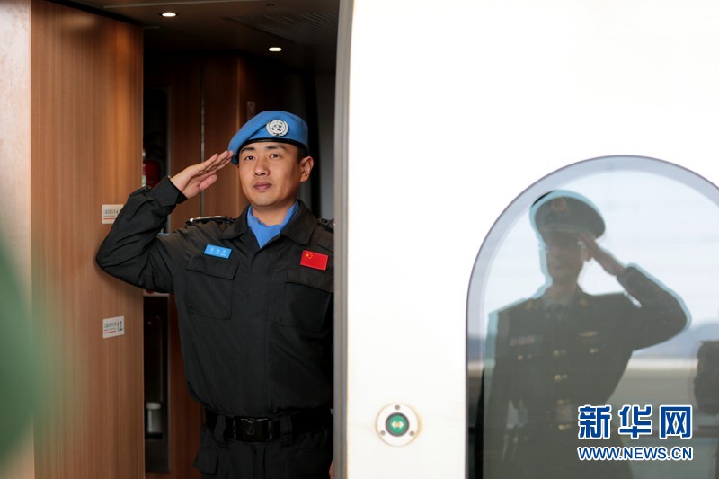 維和警官吳旭東與戰(zhàn)友敬禮告別