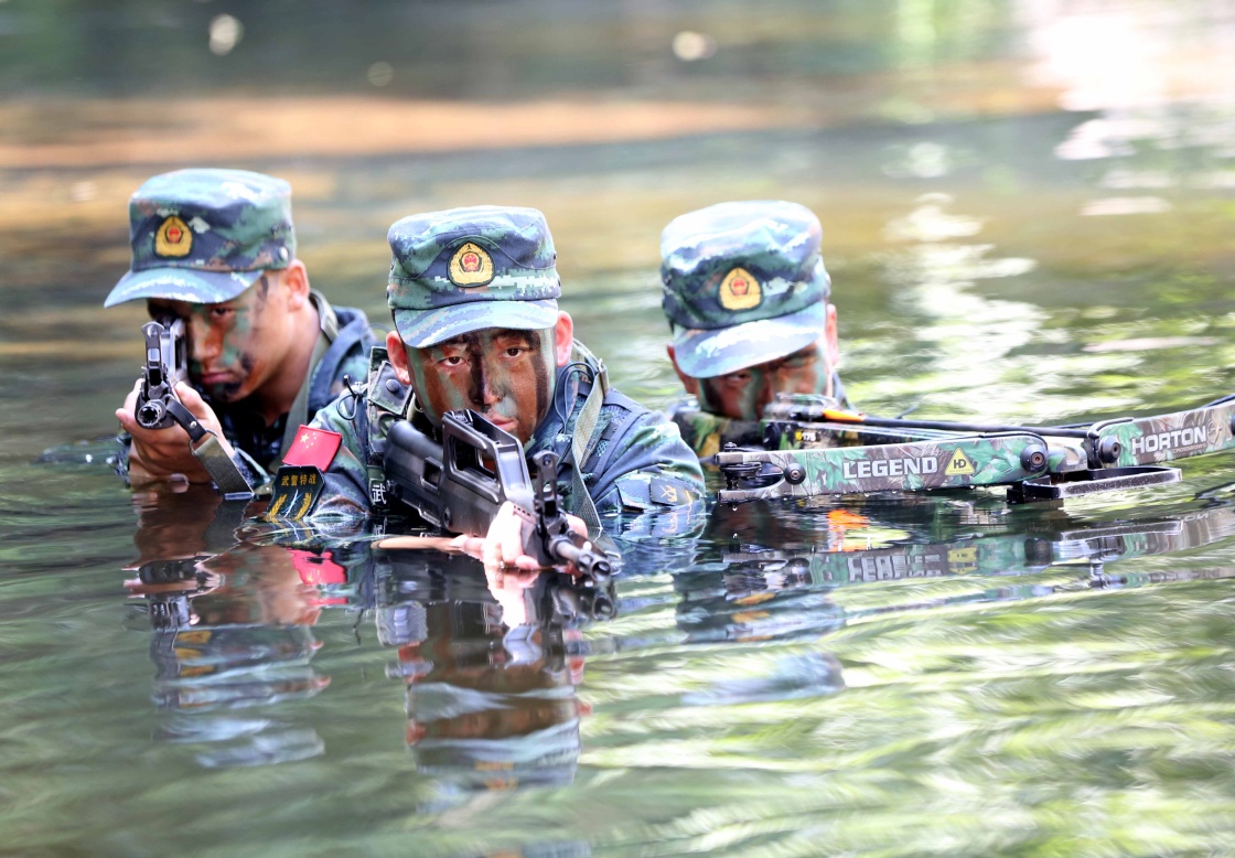 ????8月11日,武警煙臺(tái)支隊(duì)的狙擊手在進(jìn)行滲透訓(xùn)練。