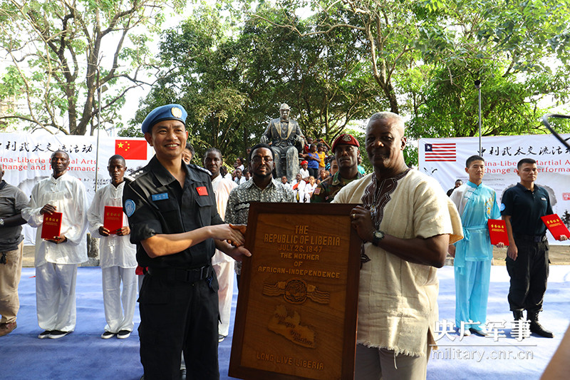 ????11月11日,中國駐利比里亞大使館、中國第四支駐利比里亞維和警察防暴隊攜同利比里亞國家武術協(xié)會在利比里亞大學舉行中利武術交流活動。