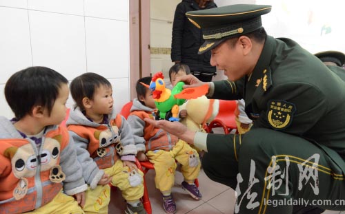 ????12月28日,廣東公安邊防總隊(duì)中山邊防支隊(duì)橫門水上邊防派出所聯(lián)合民眾鎮(zhèn)義工服務(wù)隊(duì)開(kāi)展新年集體認(rèn)親活動(dòng),邊防官兵和義工人員走進(jìn)中山市兒童福利院與小朋友結(jié)對(duì)認(rèn)親,“兵爸爸”給“兒女們”送來(lái)了玩具、糖果、學(xué)習(xí)用品等新年禮物,并與“兒女們”一起玩老鷹抓小雞、有獎(jiǎng)問(wèn)答、拍拍手等游戲,一家人用歡聲與快樂(lè)迎接新一年的到來(lái)。(肖亭 宗志鵬)
