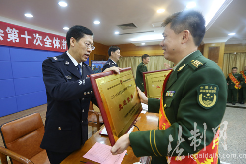 圖為胡焯副主席為優(yōu)秀官兵代表頒獎(jiǎng) 梁鈞銘攝