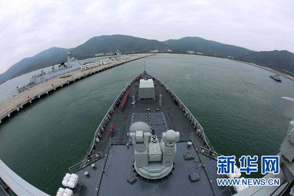 新華社海南三亞2月10日電(曾濤、周啟青)10日下午,由海軍南海艦隊導彈驅逐艦長沙艦、海口艦和綜合補給艦駱馬湖艦組成的遠海訓練編隊駛離三亞某軍港。隨后,他們將在南海某海域與航空兵等部隊展開聯(lián)合演練,拉開這次遠海訓練的序幕。