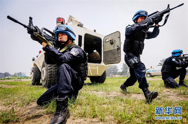 在考核現(xiàn)場,聯(lián)合國考官對隊員們在硝煙彌漫的實戰(zhàn)環(huán)境下所展現(xiàn)出的專業(yè)素養(yǎng)、精湛技能、靈活戰(zhàn)術(shù)、頑強作風(fēng)給予了高度評價。從3月初開始,常備維和警隊第二期培訓(xùn)班隊員按照更嚴(yán)標(biāo)準(zhǔn),在中國維和警察培訓(xùn)中心接受了為期4個月的強化集訓(xùn)。期間,警隊立足“常備、應(yīng)急、用之必勝”的職能定位,針對聯(lián)合國賦予的新增職能和任務(wù)區(qū)日趨嚴(yán)峻復(fù)雜的形勢,重點開展了對聯(lián)合國新政策的學(xué)習(xí)研究,加強了遭遇戰(zhàn)、運動戰(zhàn)、防御戰(zhàn)等戰(zhàn)術(shù)戰(zhàn)法實訓(xùn),在要人警衛(wèi)、車輛查控、小組戰(zhàn)術(shù)、人群控制等傳統(tǒng)演練科目的基礎(chǔ)上,新增營區(qū)防御、特警、刑偵、社區(qū)警務(wù)等新內(nèi)容,開展系統(tǒng)完整、獨具特色的實兵實裝模擬對抗演練,致力于樹立維和警察防暴隊甄選考核成績的新標(biāo)準(zhǔn),打造中國常備維和警隊的亮點品牌。