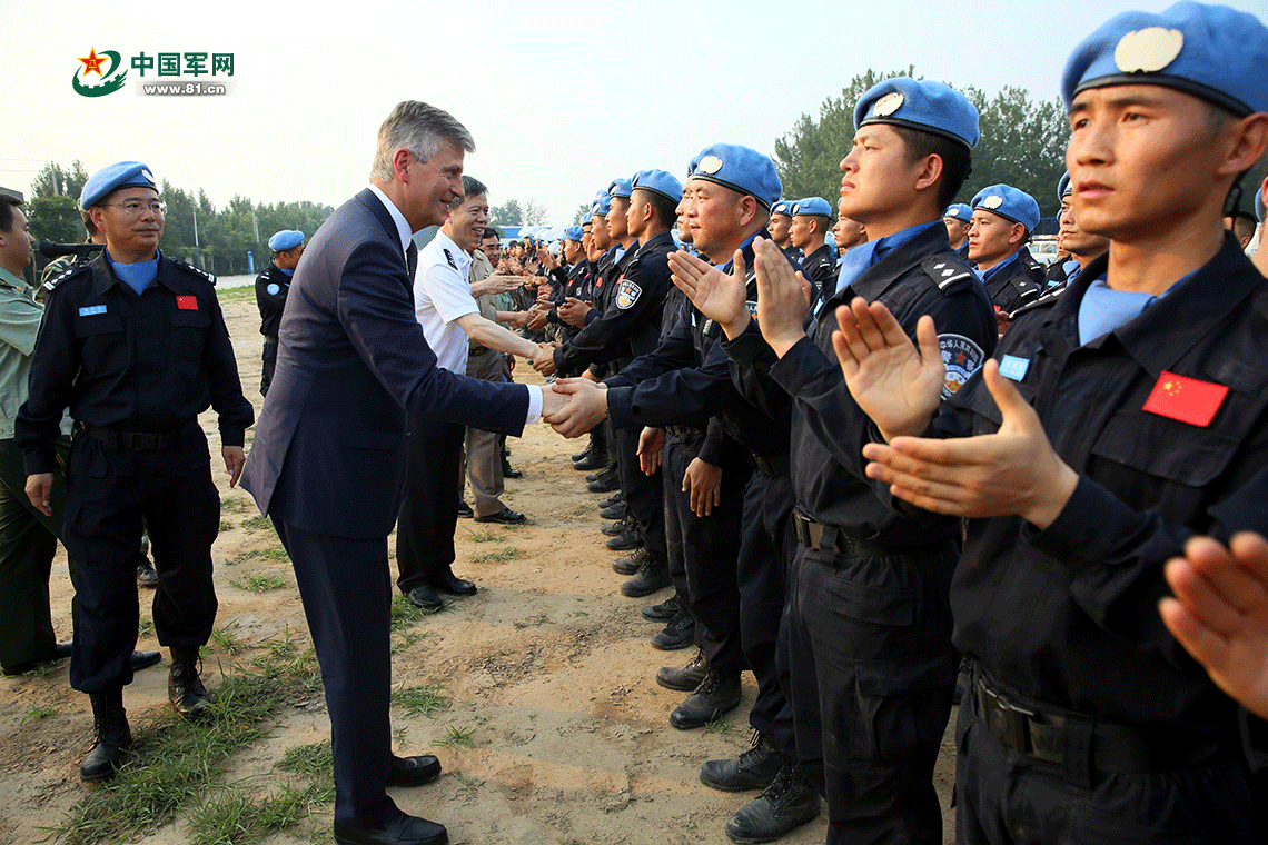 ????6月30日下午,聯(lián)合國負(fù)責(zé)維和行動(dòng)事務(wù)的副秘書長(zhǎng)拉克魯瓦視察中國維和警察培訓(xùn)中心,檢閱了正在那里參加集訓(xùn)的公安部常備維和警隊(duì)培訓(xùn)班,現(xiàn)場(chǎng)觀摩了實(shí)戰(zhàn)科目演練。他對(duì)中國常備維和警隊(duì)的優(yōu)異表現(xiàn)給予高度贊賞。