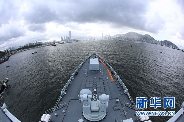 7月7日,海軍銀川艦駛?cè)胂愀郯捍薮a頭。當(dāng)日,正在執(zhí)行跨區(qū)機(jī)動訓(xùn)練任務(wù)的中國人民解放軍海軍航母編隊(duì)抵達(dá)香港,參加香港回歸祖國暨中國人民解放軍進(jìn)駐香港20周年慶?;顒樱艿较愀厶貐^(qū)政府和民眾熱烈歡迎。新華社記者 曾濤 攝