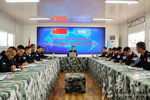 圖為中國第五支駐利比里亞維和警察防暴隊(duì)召開專題會(huì)議,反復(fù)研究勤務(wù)方案,部署任務(wù)。
