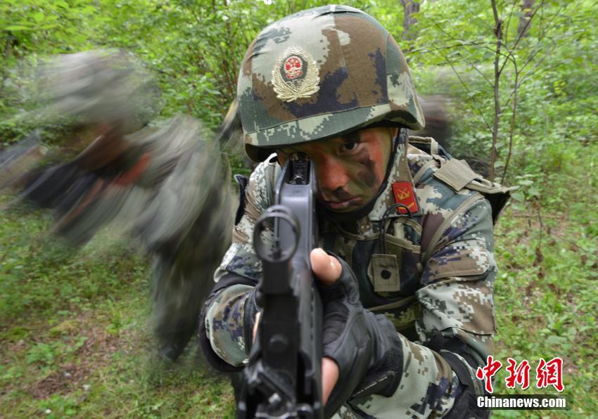 ????近日,吉林邊防總隊(duì)機(jī)動(dòng)支隊(duì)三大隊(duì)的官兵們面圖油彩,手握鋼槍,在近30攝氏度的高溫下,開展野外實(shí)戰(zhàn)訓(xùn)練。訓(xùn)練設(shè)置了突遇敵情隱蔽戰(zhàn)斗、快速行進(jìn)支援前線等多種情況,穿插安排搜索、追擊、捕殲等多個(gè)軍事科目,設(shè)立武裝奔襲、圓木越野、擒敵配套等競賽項(xiàng)目,以磨練官兵抗壓能力、堅(jiān)強(qiáng)意志和拼搏精神。劉豐 攝?