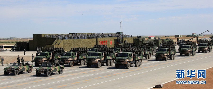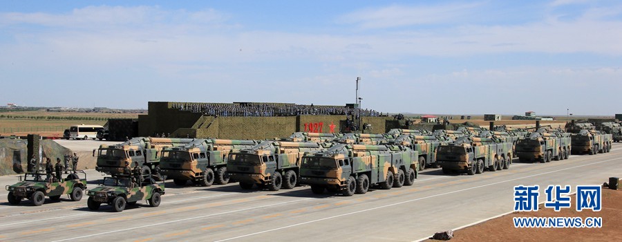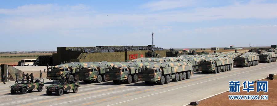 7月30日,慶祝中國(guó)人民解放軍建軍90周年閱兵在位于內(nèi)蒙古的朱日和訓(xùn)練基地舉行。中共中央總書(shū)記、國(guó)家主席、中央軍委主席習(xí)近平檢閱部隊(duì)并發(fā)表重要講話。這是核常兼?zhèn)鋵?dǎo)彈方隊(duì)。新華社記者 查春明 攝