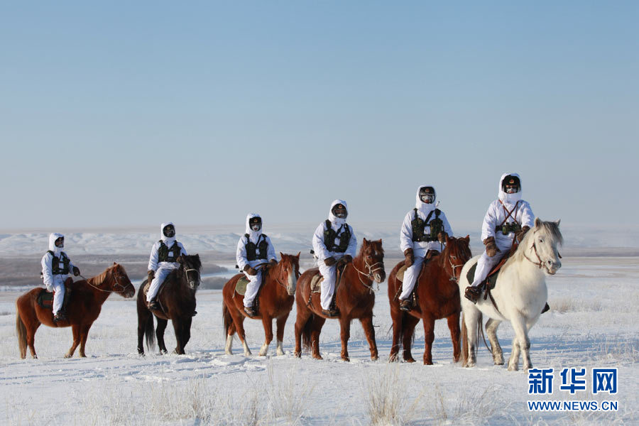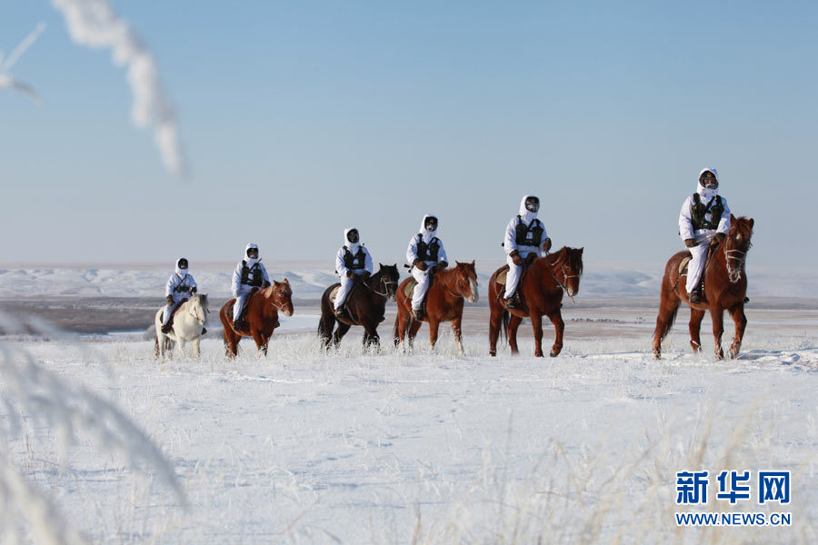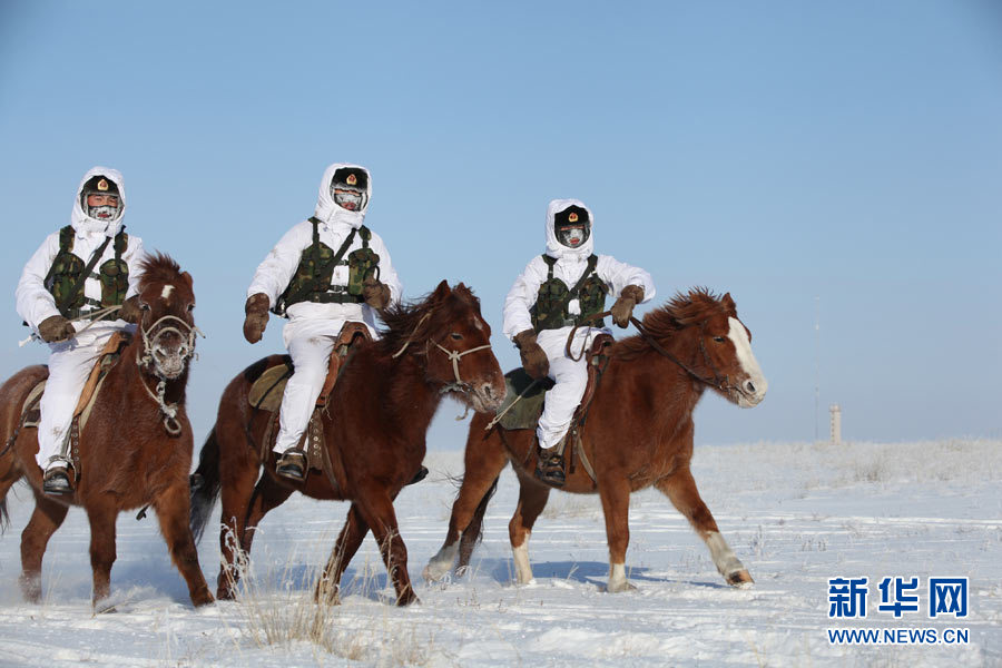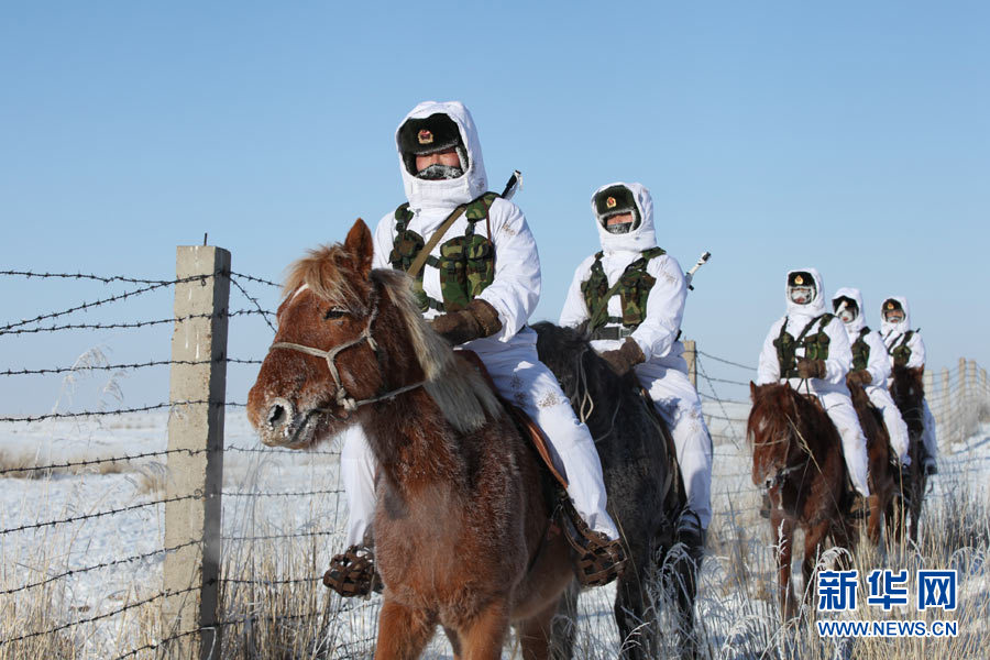 戍邊官兵冬季在邊防線上巡邏執(zhí)勤。陳在林 攝