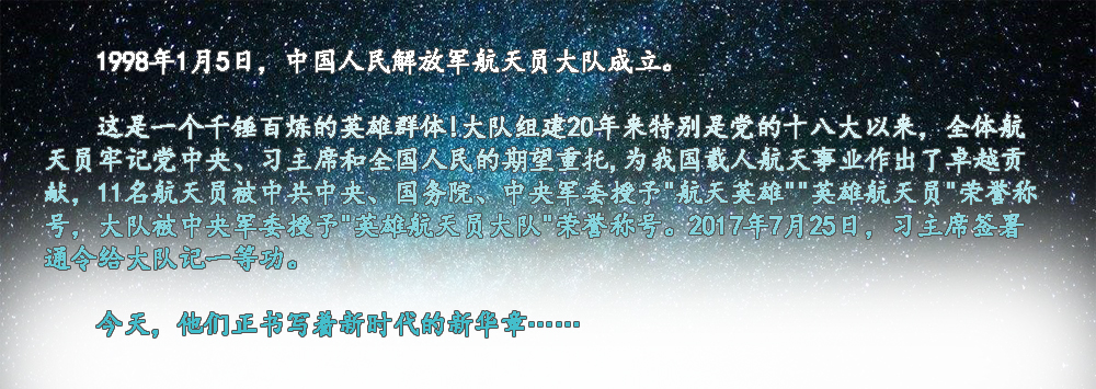 ??? 寧可備而不用,決不用而無備。1998年,我和其他14名戰(zhàn)友一起,懷著對(duì)載人航天事業(yè)的無限熱愛和憧憬,義無反顧地投身這一承載著中華民族千年飛天夢(mèng)想的偉大事業(yè)。我先后入選神十、神十一飛行任務(wù)乘組梯隊(duì),但每一次都與飛天失之交臂。直到今天,我和戰(zhàn)友們一樣,還在堅(jiān)持不懈地開展訓(xùn)練。因?yàn)槲抑?,無論是否執(zhí)行飛行任務(wù),任務(wù)的成功就是我的成功,戰(zhàn)友在天上的表現(xiàn)就是我的表現(xiàn),我愿永遠(yuǎn)做筑夢(mèng)九天的基石,為建設(shè)航天強(qiáng)國當(dāng)好陪練,守望初心,堅(jiān)守寂寞。?