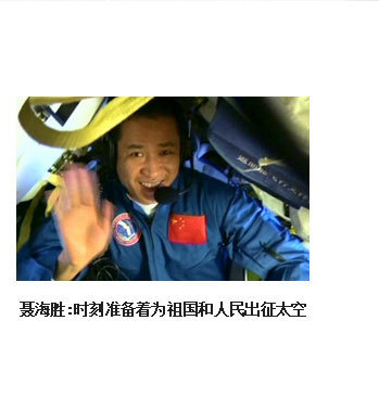 ??? 時(shí)刻準(zhǔn)備著,將祖國的榮耀一次次寫滿太空。在我加入航天員大隊(duì)后,有2件事深深地烙在我的腦海中。一是,一位老華僑在神舟五號(hào)任務(wù)成功后,含淚而說的“你們航天員飛得有多高,我們海外游子的頭就能昂多高”。二是,我們面對(duì)國旗許下的誓言,“為祖國的載人航天事業(yè)奮斗終身”。我始終以嚴(yán)慎細(xì)實(shí)的精神,以時(shí)不我待的狀態(tài),腳踏實(shí)地、努力學(xué)習(xí)、刻苦訓(xùn)練,以實(shí)際行動(dòng)踐行諾言,用一生的執(zhí)著與追求,時(shí)刻準(zhǔn)備著,將祖國的榮耀一次次寫滿太空!?