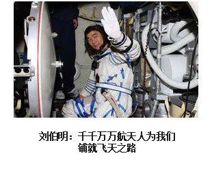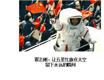 ??? 漫步太空、紅旗永駐。2008年9月27日16時(shí)43分,浩渺太空,敞懷相迎,我在戰(zhàn)友伯明、海鵬的協(xié)助和支持下,打開軌道艙艙門,邁出了中國人在茫茫太空中的第一步。在19分35秒的艙外活動(dòng)中,我隨飛船一起飛過了9165公里,成為中國“飛得最高、走得最快”的人。然而,成功并不代表成熟,一切仍要從零開始。后續(xù)的空間站任務(wù)、登陸月球……路還很長,挑戰(zhàn)還很多,需要付出和努力的也還很多。對(duì)于我來說,沒有停歇的腳步,只有奮進(jìn)的號(hào)角。